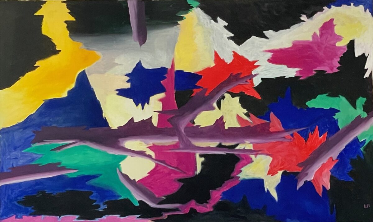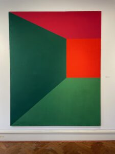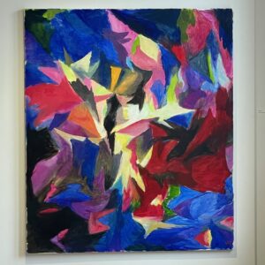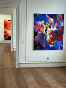 Verstärkt wird die Wirkung durch die zackigen, teils stabartig durchdringenden Formen der Farbflächen. Handkes letzte Zeile des Gedichts „Lied vom Kind sein“ kommt mir in den Sinn: „Als das Kind Kind war, warf es einen Stock als Lanze gegen den Baum, und sie zittert da heute noch.“ Auf eine sehr persönliche Art hat Uwe Paduck für mich ein Gefühl des Erzählens über Farbe zum Ausdruck gebracht, das Erinnerungen erhalten und die gegenwärtige Identität aus der Vergangenheit erschaffen hat. Seine Farbwelten lassen uns eintauchen, schaffen sensibel Raum für Wahrnehmung und Reflexion.